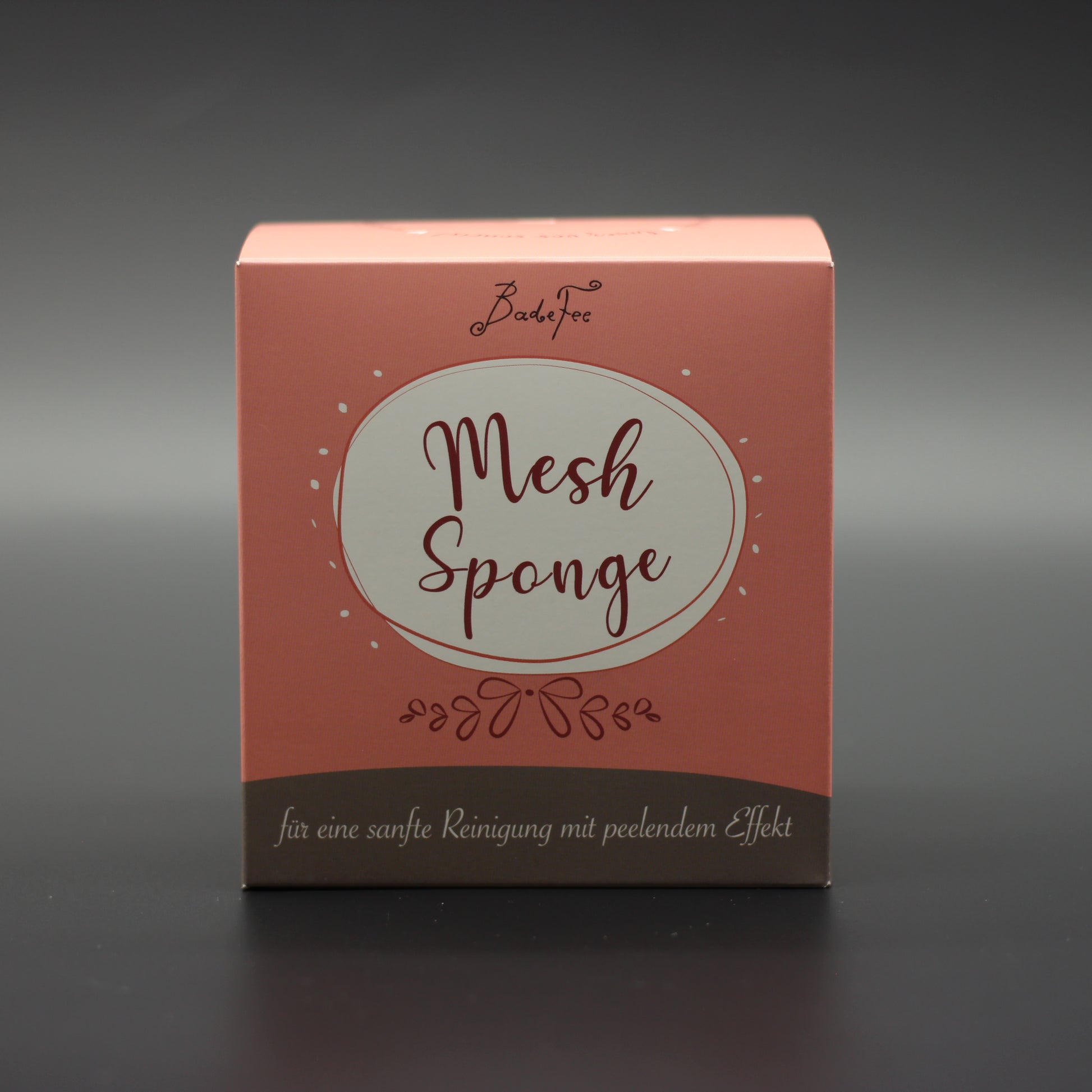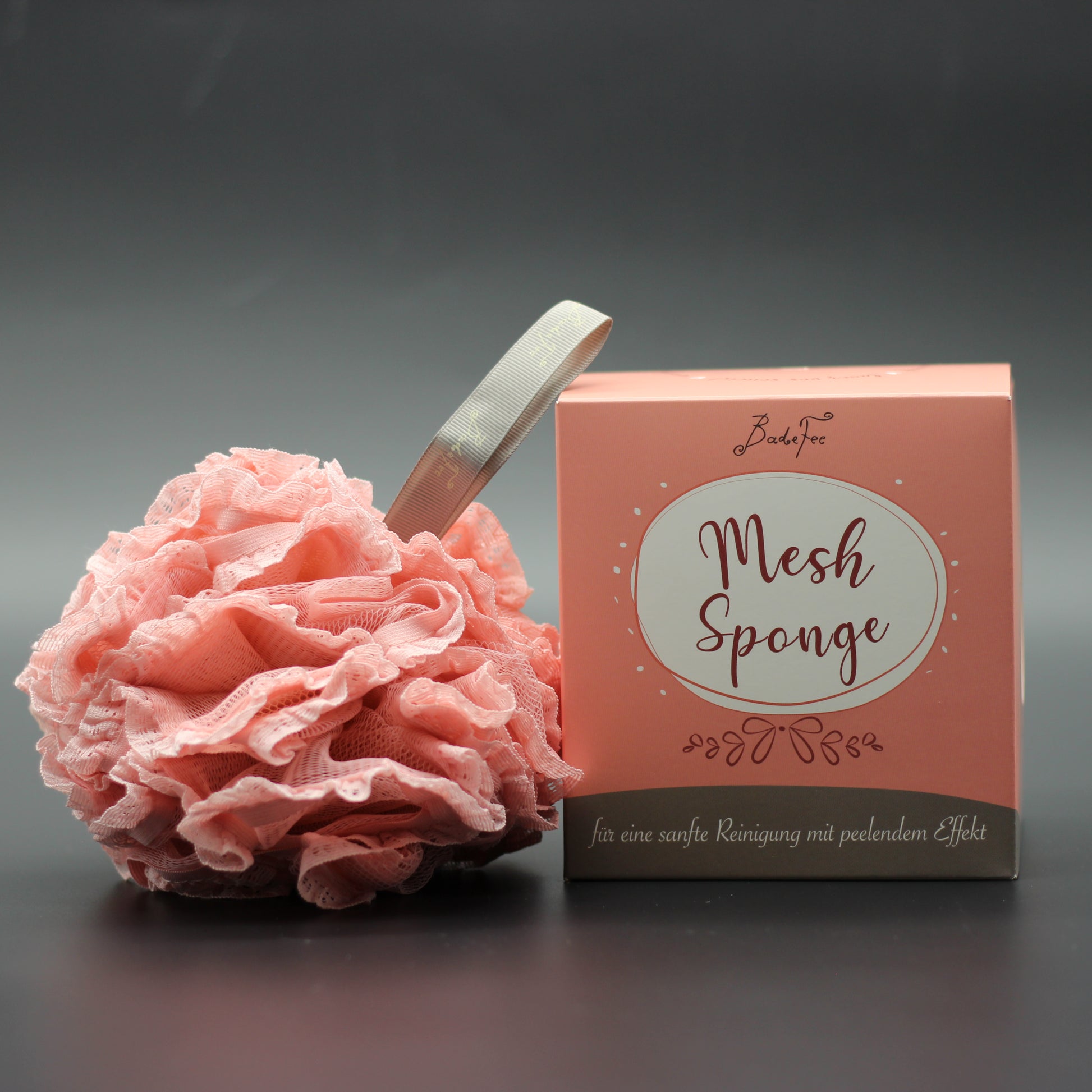 Fluffiger Badeschwamm – Rosa | Handgenähter Netzschwamm in Geschenkbox (Ø 15 cm)